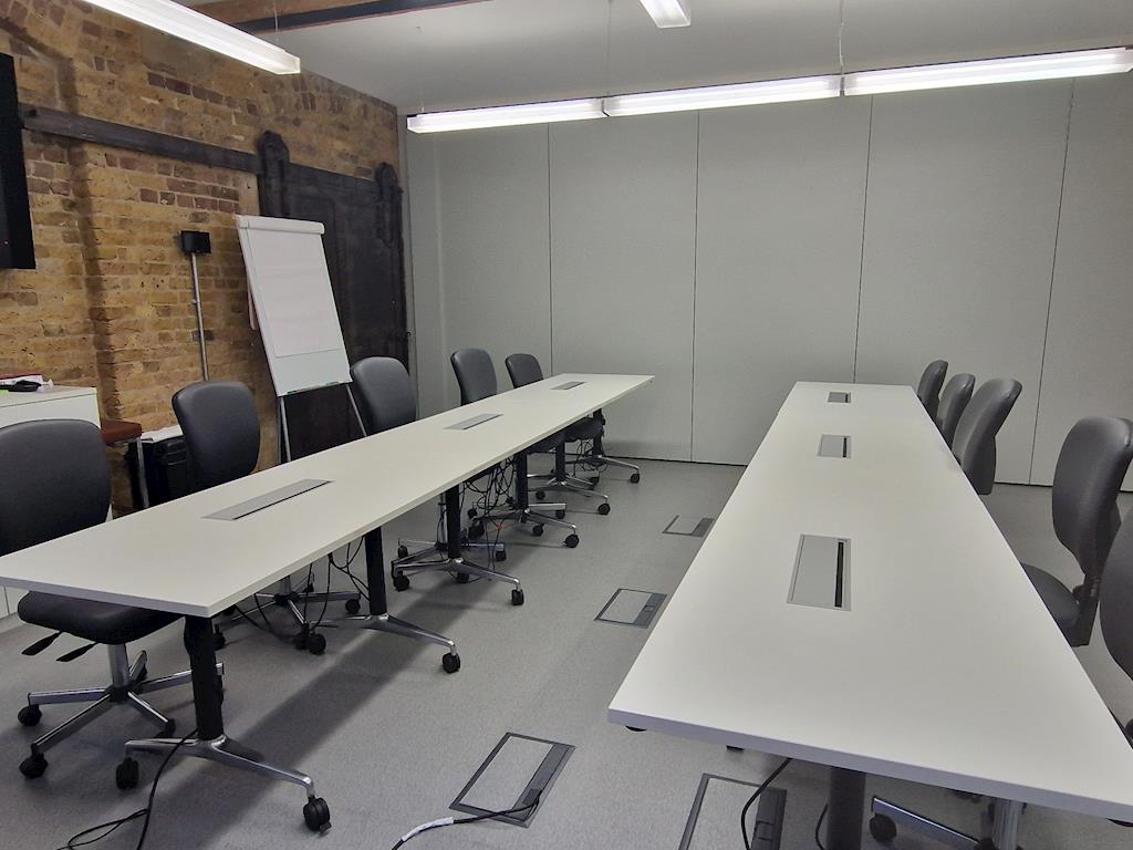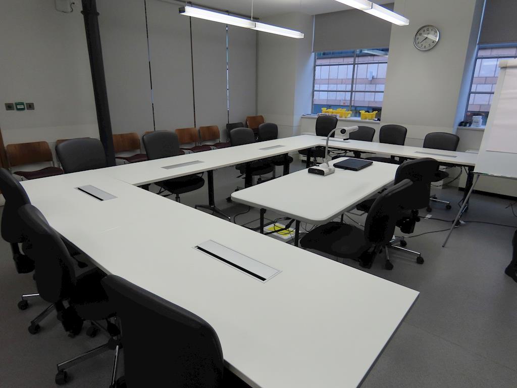 This room is adjacent to the skills centre and can accommodate 12 people in boardroom style (expanded to 20 with additional seating). It features a 65” LED screen with standard HDMI and VGA inputs for external sources. This room is quite versatile and can be used for meetings too.